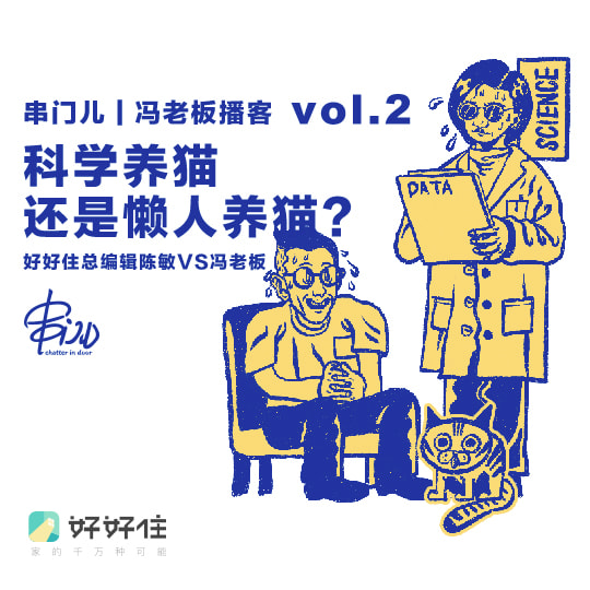 串门儿第二期播客上线啦! 本期探讨如何成为一名合格铲屎官:究竟是pick「科学养猫」还是「懒人养猫」? 科学养猫代表——陈敏(陈老师,好好住APP昵称@陈fay)好好住APP总编辑,家有一只血统不明的串儿「李冬宝」; 懒人养猫代表——冯老板(好好住APP昵称@冯老板),家有三只喵星人:英短「定春」、美短「护士」、金渐层「黄毛」。 两方代表正面pk,吐血送上全面扫盲养猫指南,给正在养猫或打算养猫的你。 想去看看这四只小主子长啥样?下载好好住APP搜索他们的昵称吧! 还能get陈fay独家养猫...